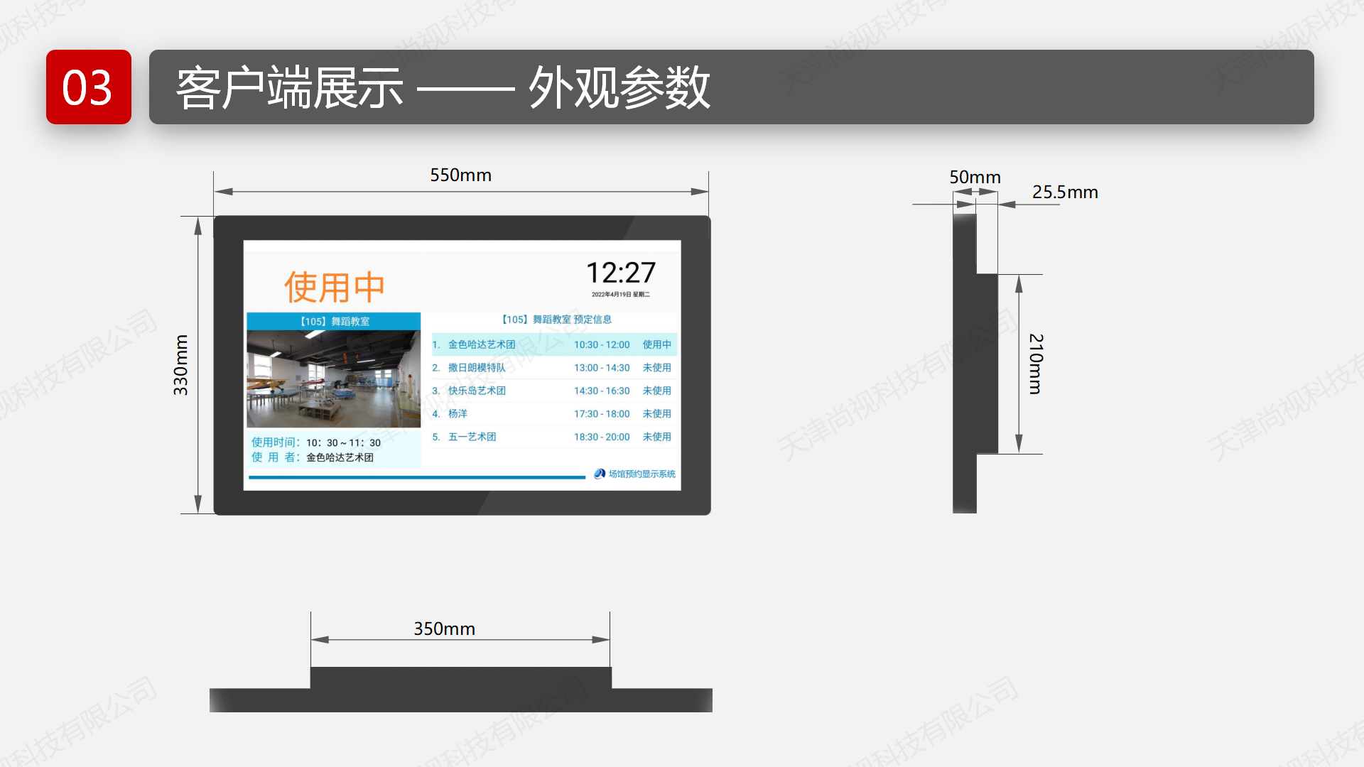 目标是为各场馆的准备提供便捷的服务,实时动态的将场馆预定信息,传递到每个场馆门口的显示屏上,实现场馆预订信息发布引导功能为场馆的使用提供顺畅环境。